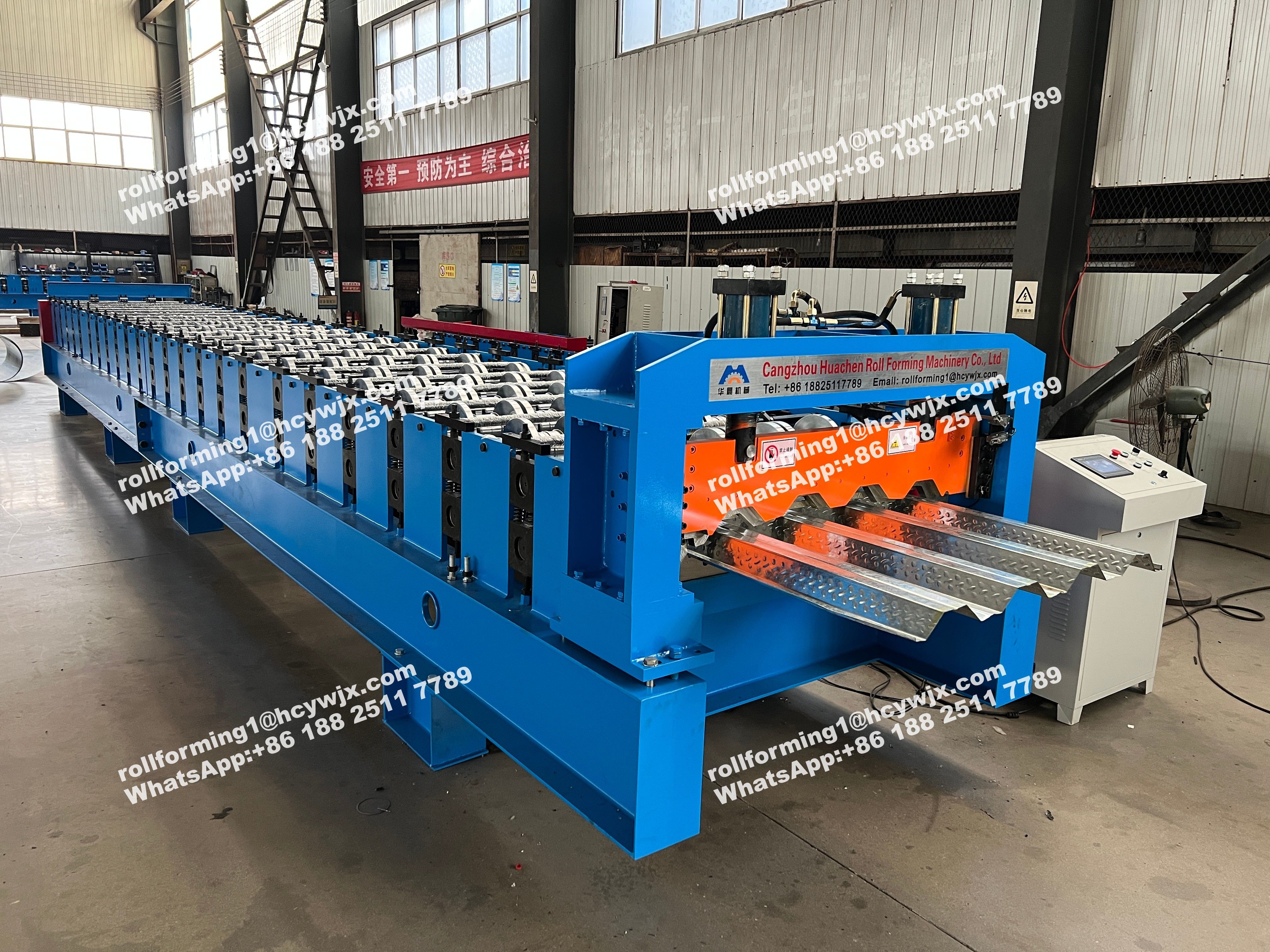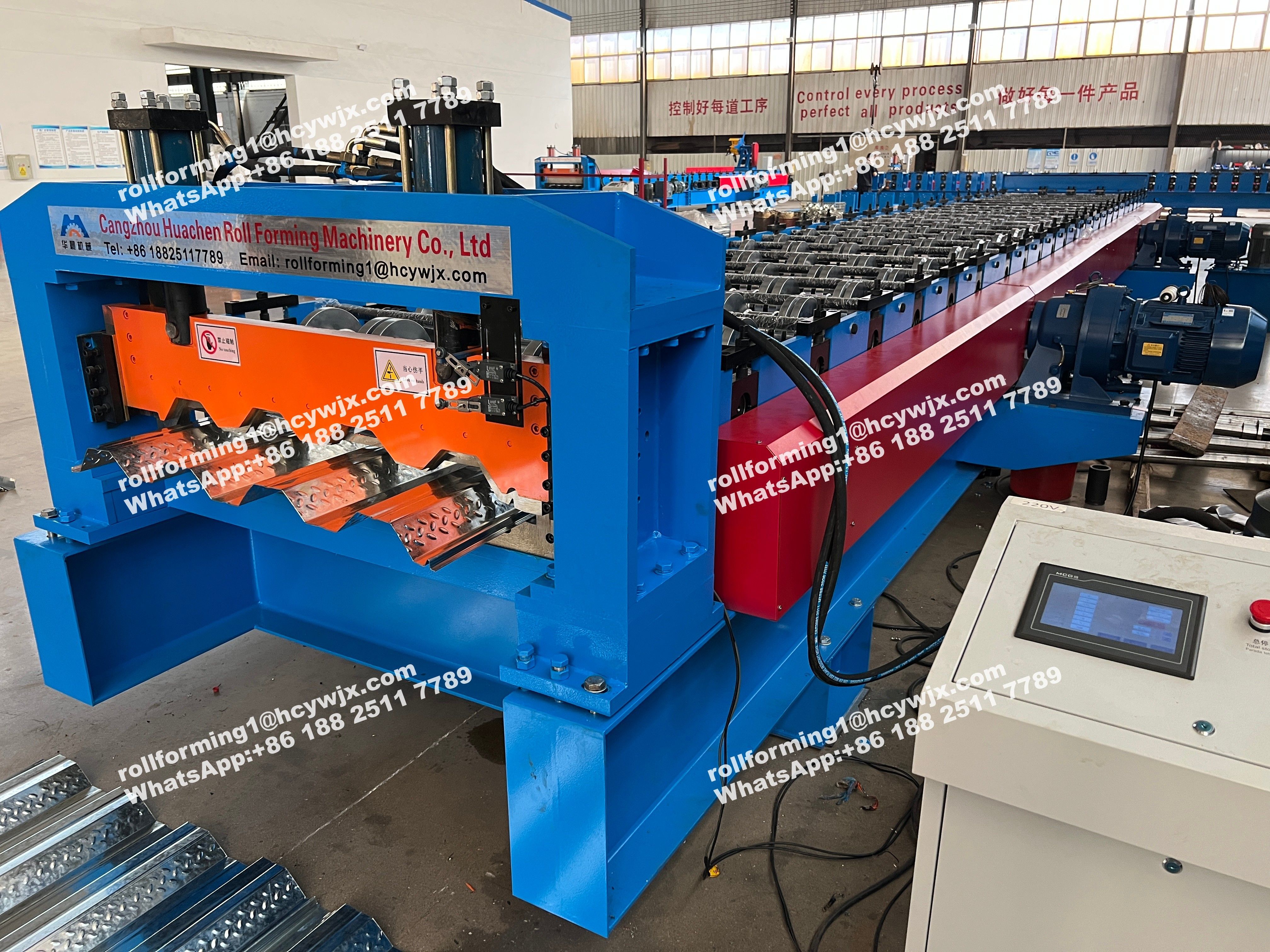 نظام التحكم في آلة تشكيل لفائف ألواح الأرضيات هو نظام تحكم PLC، مما يضمن أن الآلة تعمل بسلاسة وكفاءة. يتم لحام إطار هذه الآلة باستخدام فولاذ شعاع H مقاس 400 مم، مما يضمن استقرار ومتانة الآلة. تم تصميم هذه الآلة لتدوم ويمكنها تحمل حتى بيئات الإنتاج الأكثر تطلبًا.